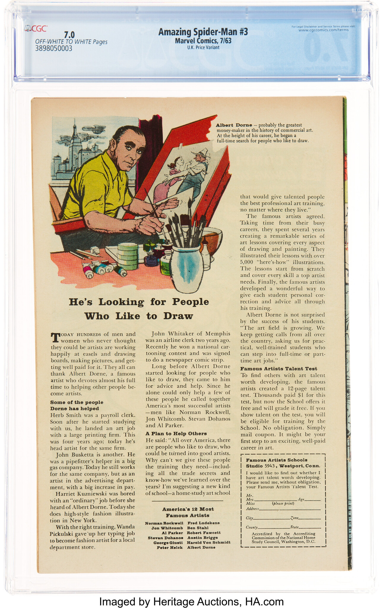 AMAZING SPIDER-MAN #3 CGC 7.0 UK PRICE VARIANT MARVEL 1ST DOC OCK #3898050003