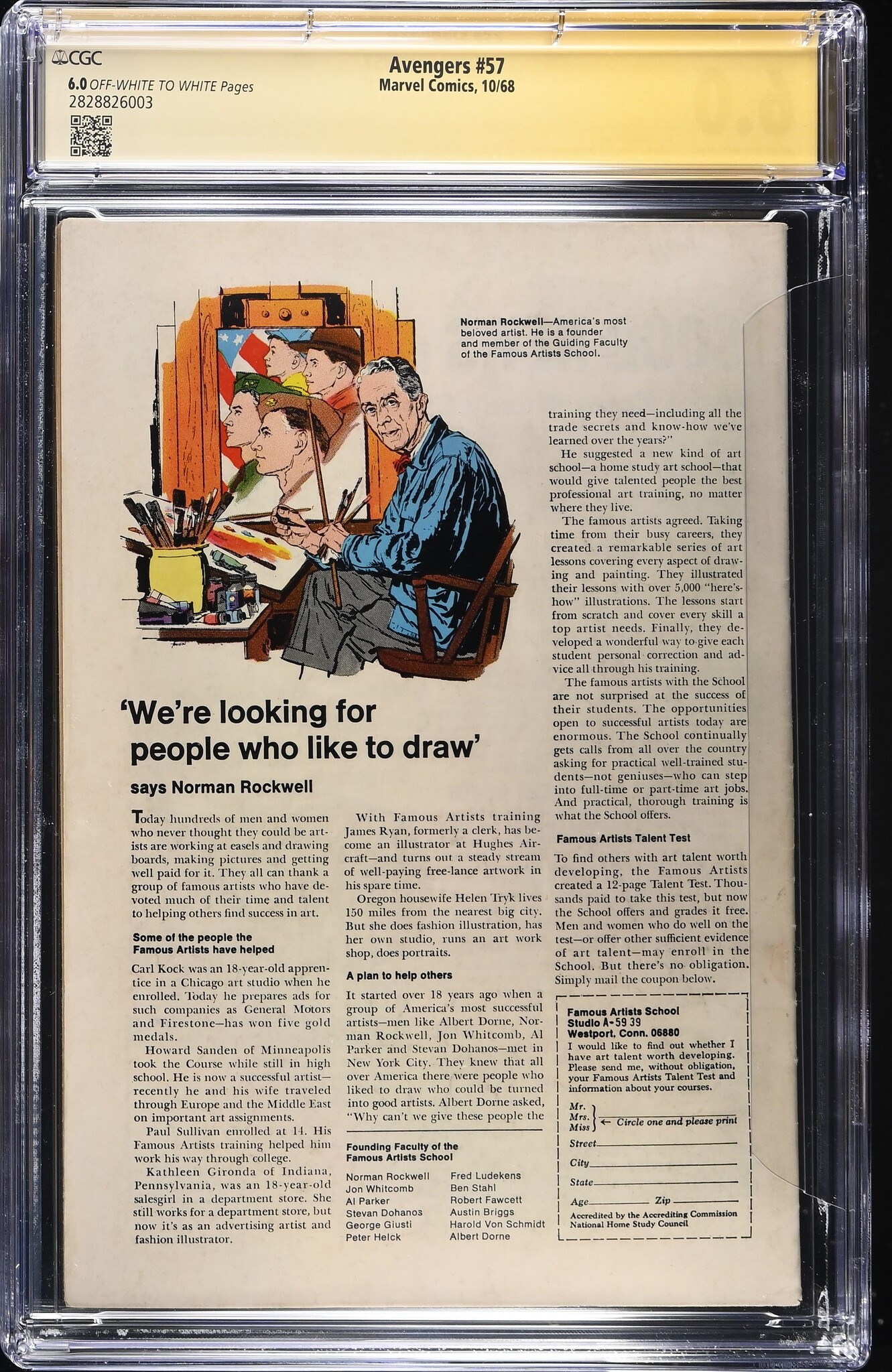 AVENGERS #57 CGC 6.0 OWW 1ST APP SILVER AGE VISION SS ROY THOMAS #2828826003