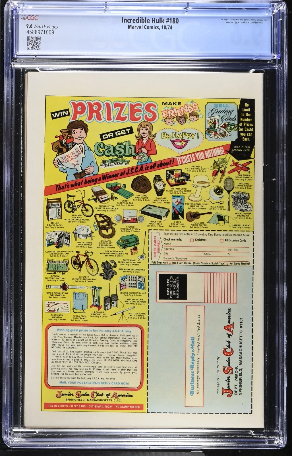 INCREDIBLE HULK #180 CGC 9.6 1ST APPEARANCE OF WOLVERINE CGC #4588971009