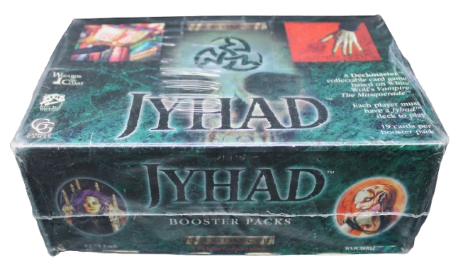 The release first release consisted of 438 cards sold in 76-card starter decks and 19-card booster packs. In 1995 the game was renamed from Jyhad to Vampire: The Eternal Struggle to increase its appeal