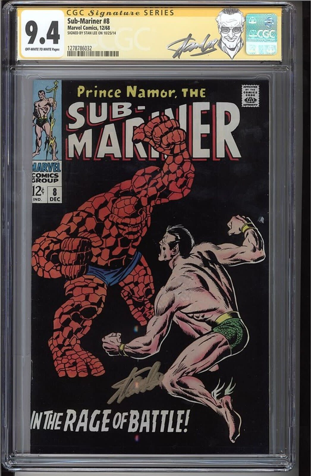 SUB-MARINER #8 CGC 9.4 OWW SS STAN LEE SIGNED CLASSIC COVER CGC #1278786032